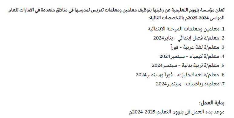 للتقديم على هذه الفرص بشكل مباشر يرجى زيارة الموقع الرسمي للمدرسة عبر الرابط التالي :