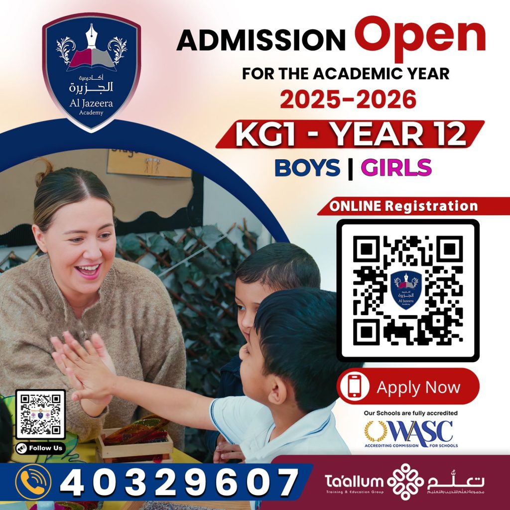 تعلن أكاديمية الجزيرة (Al Jazeera Academy) عن توفير عدة شواغر ووظائف للمعلمين في قطر برواتب مميزة تصل إلى 5500 دولار
